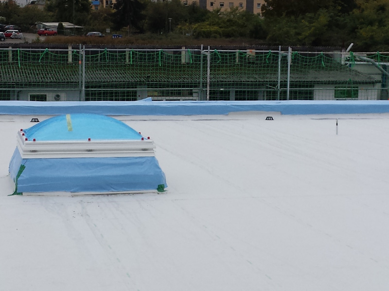 Dachabdichtung mit selbstklebenden TPO-Dachba, Neubau LIDL Markt, Schwetzingen, Deutschland